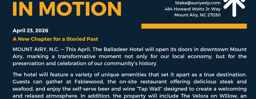 Projects like this reflect the momentum building across Surry County. By honoring our heritage while embracing new opportunities, we are creating spaces that attract talent, encourage entrepreneurship, and foster community pride.